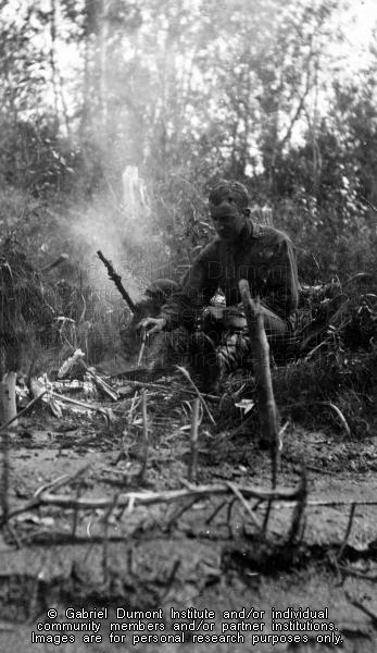| Description: | A member of the New Northwest Exploration expedition sitting in front of a campfire in northern Saskatchewan, 1908-1909. From the Frank J.P. Crean fonds.