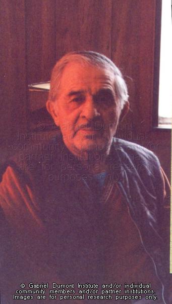 Photograph of John Amyotte. John came from Lebret, SK and was in military service from August 1st, 1940 until October 20th, 1945. He was a Gunner in the 60th/76th Field Battery, RCA, and served in the United Kingdom, Europe and the central Mediterranean. His medals include: 1939-45 Star, Italy Star, France and Germany star, Defence Medal, Canadian Volunteer Service medal and Clasp, and War Medal (1939-45). Johnʼs story can be found in "Remembrances: Interviews With Metis Veterans". To purchase Métis Veterans: Remembrances please visit: GDIʼs E-commerce Site. |