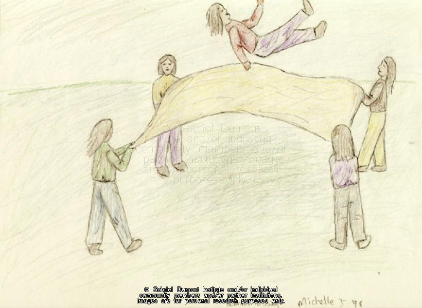 | Description: | Illustration, of people playing blanket toss, by Michelle Isbister. |