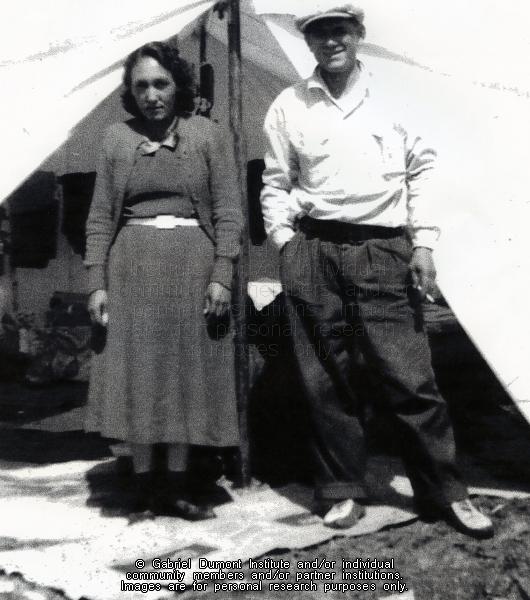Bernadette and Frank Hansen of Buffalo Narrows, SK. Bernadette was from the Cold Lake, AB area. When she was a child, her family moved to the Clear Lake area near Buffalo Narrows. This image is to be used for research purposes only. The reproduction of this image in whole or in part is strictly prohibited without the permission of the copyright holder. Copyright for this image belongs to Lawrence Arnault, and/or the person(s) in the photograph, and/or their descendants. |