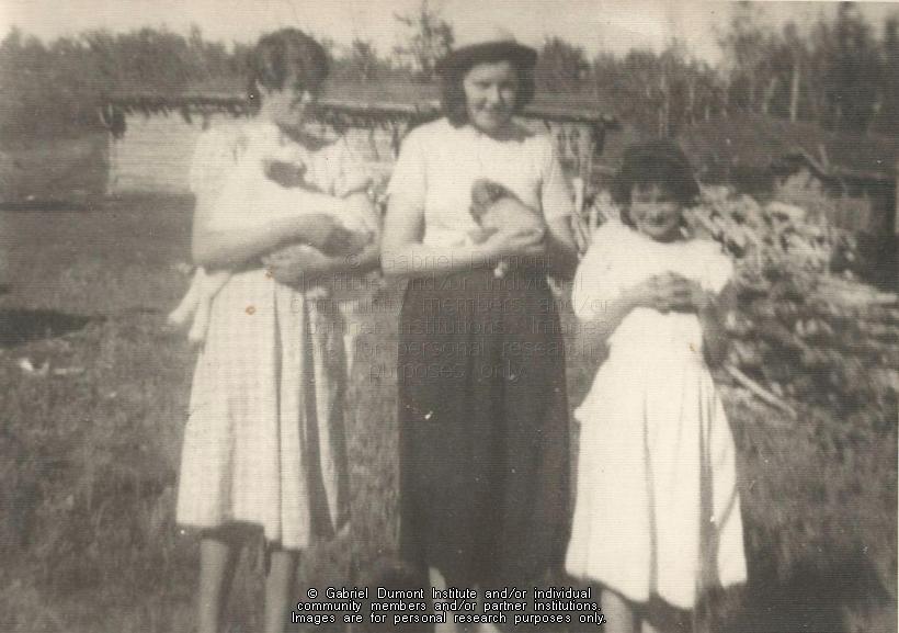 This is an image of (L-R), Marie Anne Boyer (1929-1990), Estelle Boyer (1935-2012), and Alexina Boyer (1941-1955). The image was taken from the Boyer family farm. Source: Brenda Boyer-Percell. This image must not be reproduced. The original source of this image is with Estelle Boyer. |
